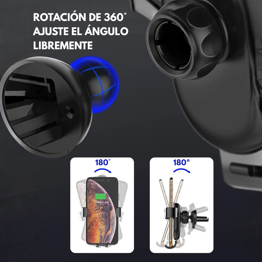 Con rotación total de 360°, puedes ajustar el ángulo perfecto para navegar, atender llamadas o reproducir música sin apartar la vista del camino. Su estructura de aleación de aluminio y plástico de alta calidad combina resistencia con un diseño moderno y elegante, adaptándose a cualquier interior de vehículo.