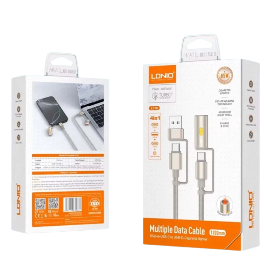 El LDNIO LC18 redefine el concepto de cable de carga para el automóvil. No solo permite carga rápida de hasta 65W, sino que además integra una función de encendedor electrónico, convirtiéndose en un accesorio versátil para conductores modernos.