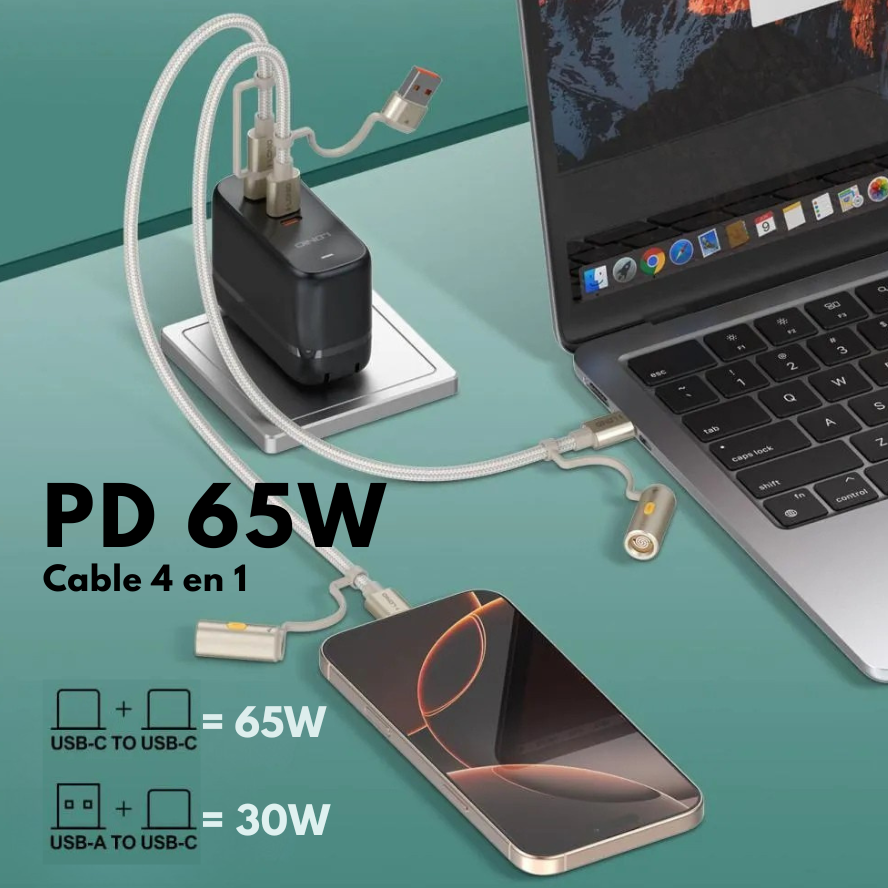 ⚡ 65W Power Delivery — carga ultra rápida real