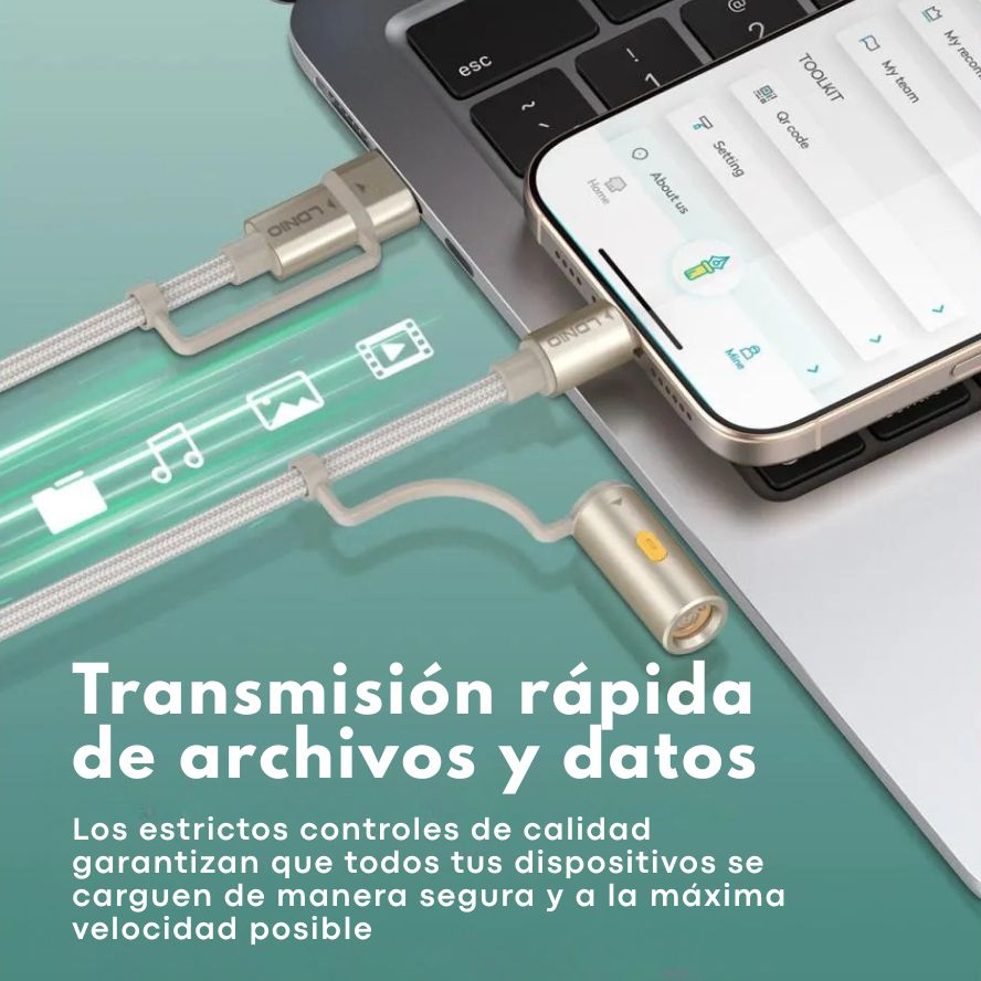 Diseñado para quienes buscan eficiencia, resistencia y multifuncionalidad, este cable permite cargar múltiples dispositivos mientras incorpora una herramienta útil en el día a día.