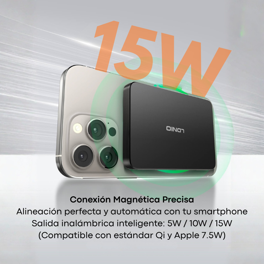 La LDNIO PQ28 es una batería portátil magnética ultra liviana diseñada para quienes necesitan energía rápida, sin cables y sin volumen extra. Con solo 119 gramos, ofrece carga inalámbrica magnética de 15W y carga rápida USB-C Power Delivery de 20W, convirtiéndose en la solución ideal para iPhone, Samsung y smartphones Android compatibles con carga Qi.