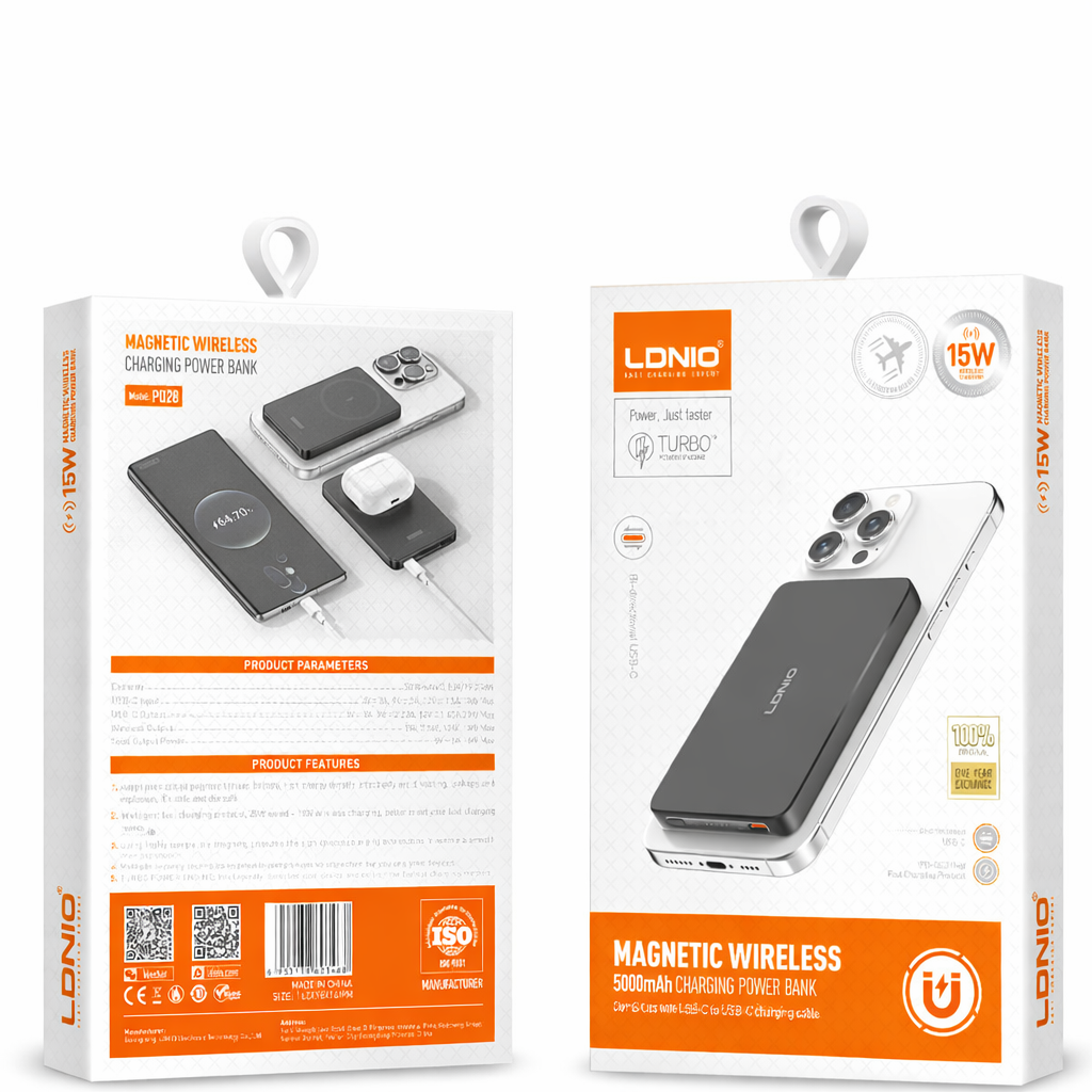Si buscas una batería portátil magnética compacta, liviana y de carga rápida, la LDNIO PQ28 es la opción ideal para uso diario, viajes o trabajo móvil.
