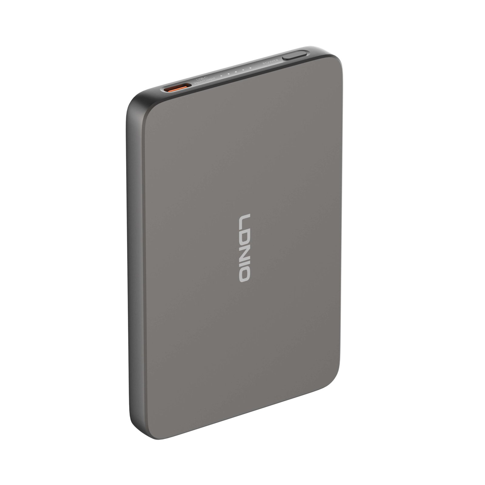 Power bank LDNIO PQ28 ultraliviano 5000mAh con carga inalámbrica magnética 15W y carga rápida USB-C Power Delivery 20W color gris